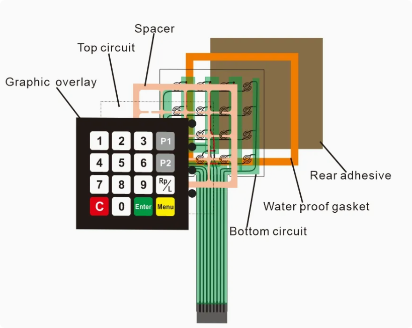 비촉각 멤브레인 스위치에는 버튼을 눌렀음을 나타내는 촉각 반응이 없습니다. 대신, 응답은 일반적으로 조명, 소리 또는 계측기 디스플레이의 판독값을 통해 표시됩니다. 비촉각 멤브레인 스위치를 사용하면 오버레이 하단이 전도성 패드에 연결되거나 상부 회로 레이어에 전도성 트레이스가 인쇄됩니다. 오버레이를 누르면 전도성 트레이스가 하부 회로층에 연결되어 인쇄 회로 기판에 신호를 보냅니다.